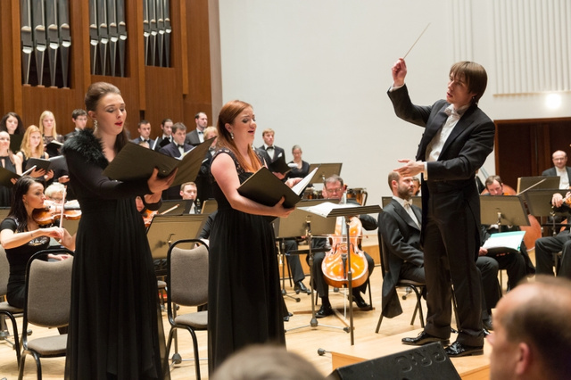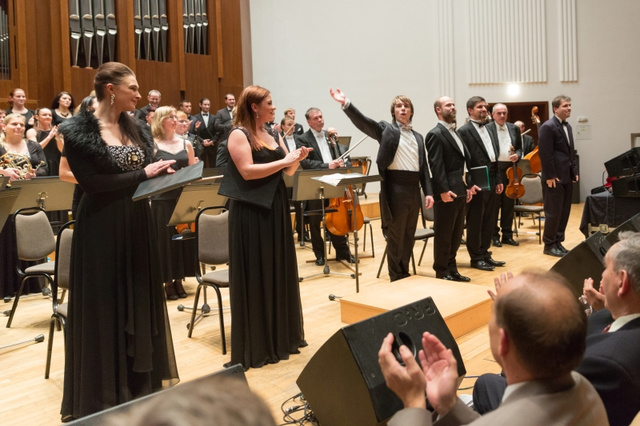 Konal se na počátku Velikonoc (28. 3.) a naplněný sál Rudolfina svědčil o tom, že nešlo jen o interní záležitost učiliště, ale o plnohodnotný koncert sezony za účasti předního pražského profesionálního tělesa. Symfonický orchestr Českého rozhlasu se naplno angažoval ve svém velkém obsazení v partiturách, náročných v mnoha ohledech. V úvodu se nejdříve představil Smyčcový orchestr Pražské konzervatoře řízený Karlem Doležalem s poeticky hravými Tanci pro harfu a smyčce Clauda Debussyho. Harfistka Barbora Plachá předvedla vysokou technickou dispozici i smysl pro jemné sonické odstíny s akcentem na výrazové kontrasty částí Danse sacrée a Danse profane.